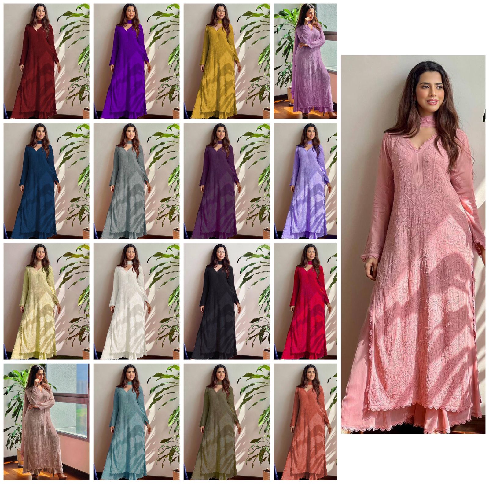 Viscose Georgette chikankari kurta with Plazzo and Dupatta